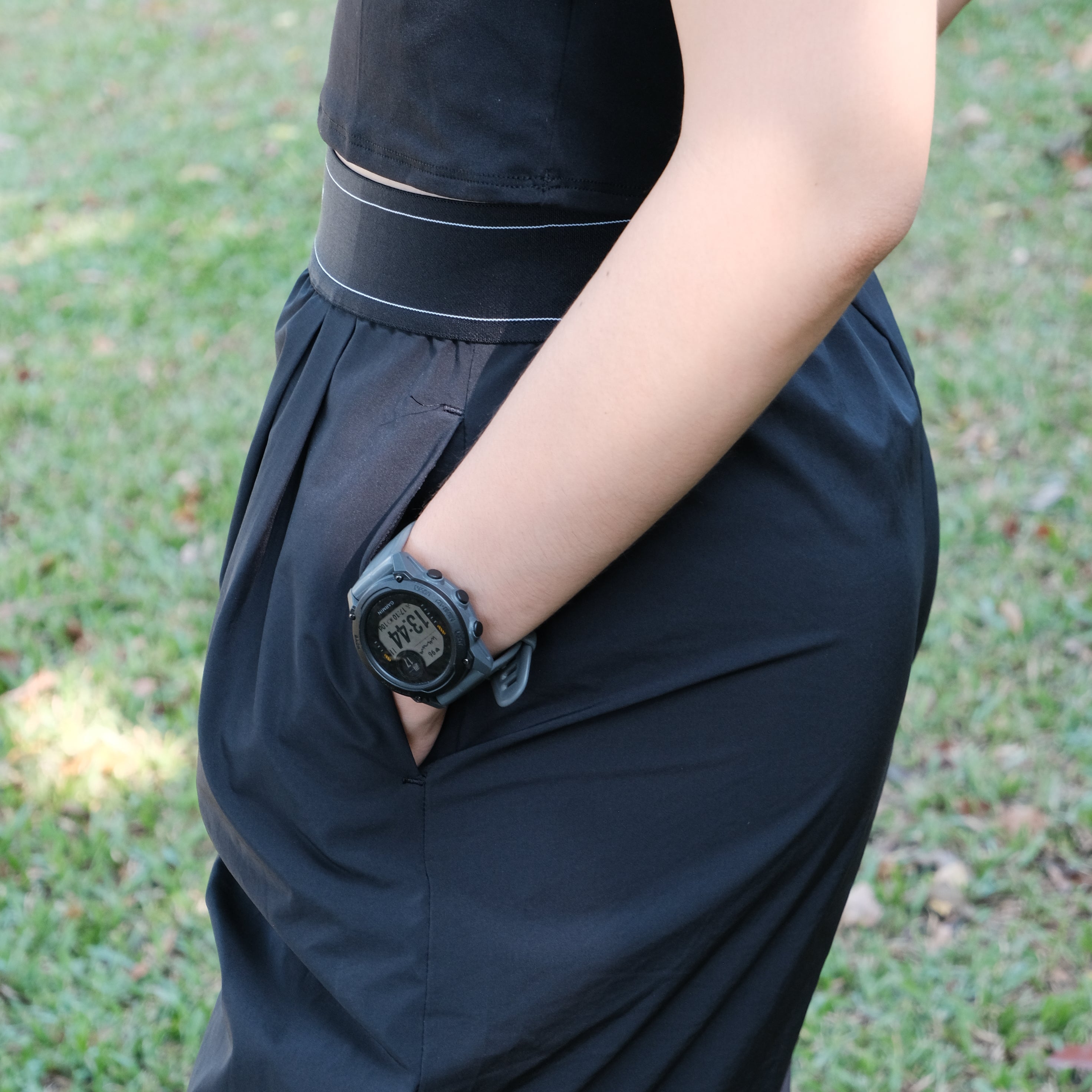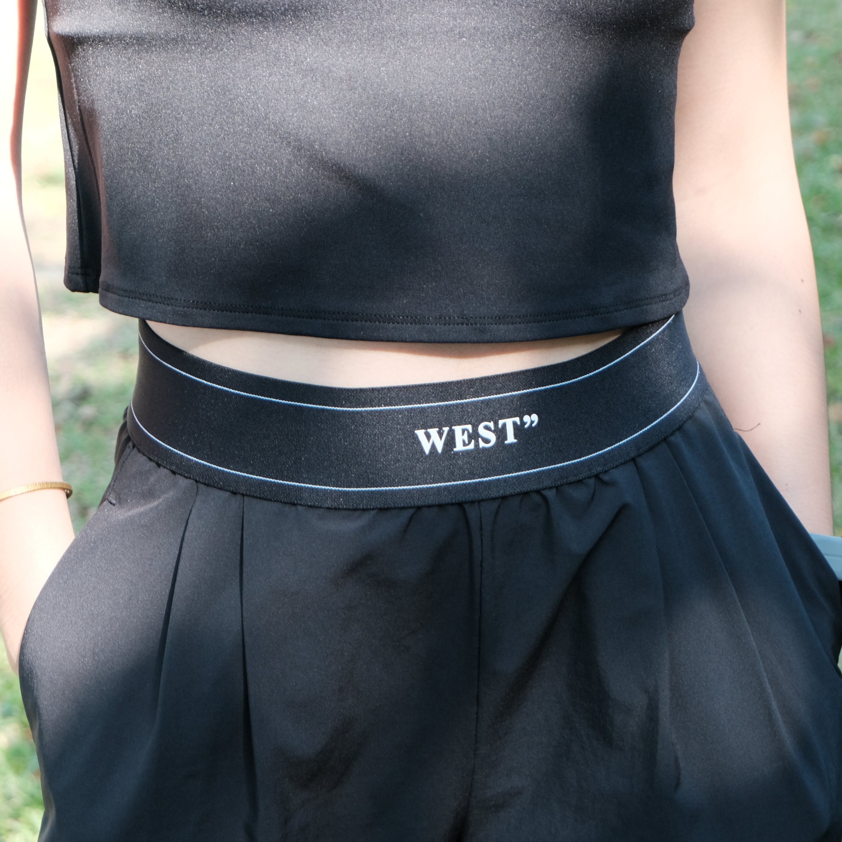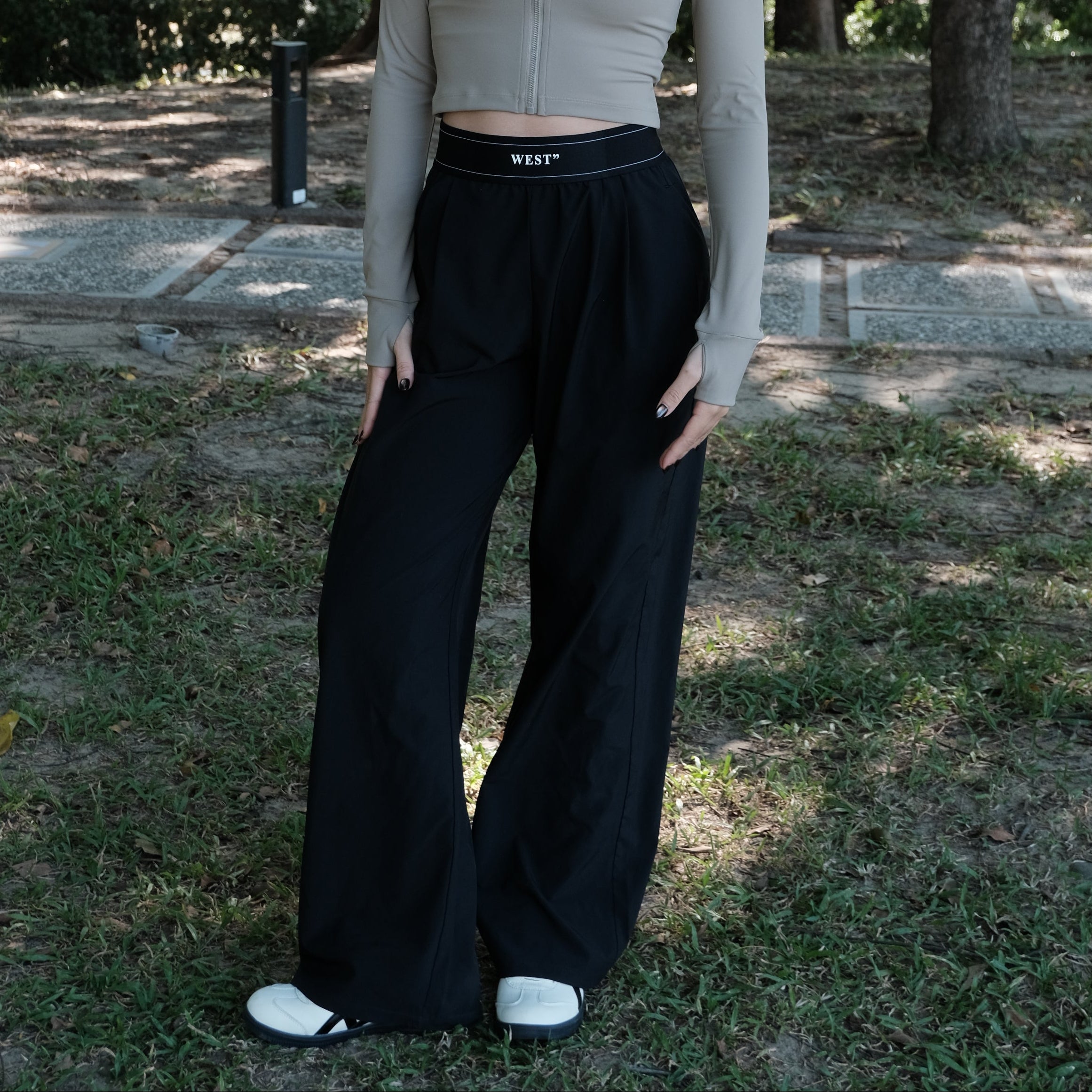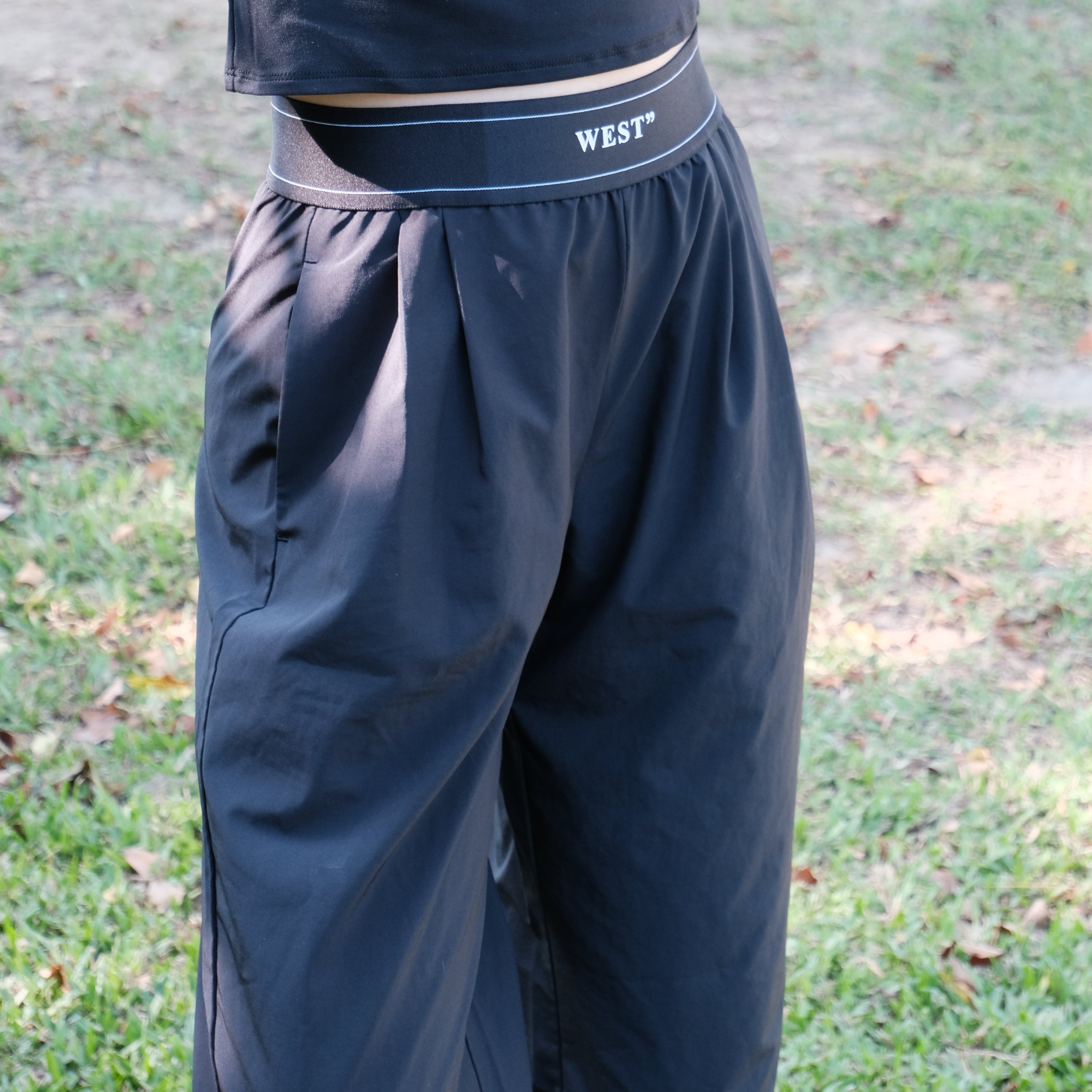 快乾織帶寬褲(黑色/深霧藍)